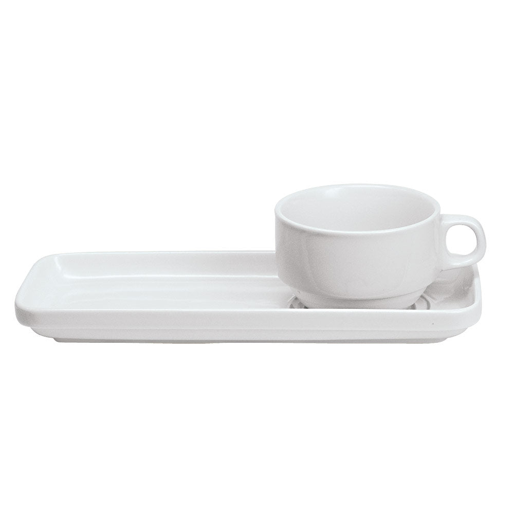 Die Setplatte dient als Unterlage und vereinfacht das Transportieren von Getränken. Sie eignet sich für die Kaffeetassen und die Henkelbecher 25 cl und 29 cl. Außerdem besitzt sie einen Doppelspiegel. Die Größe beträgt 23,5 x 9,2 x 2,5 cm.