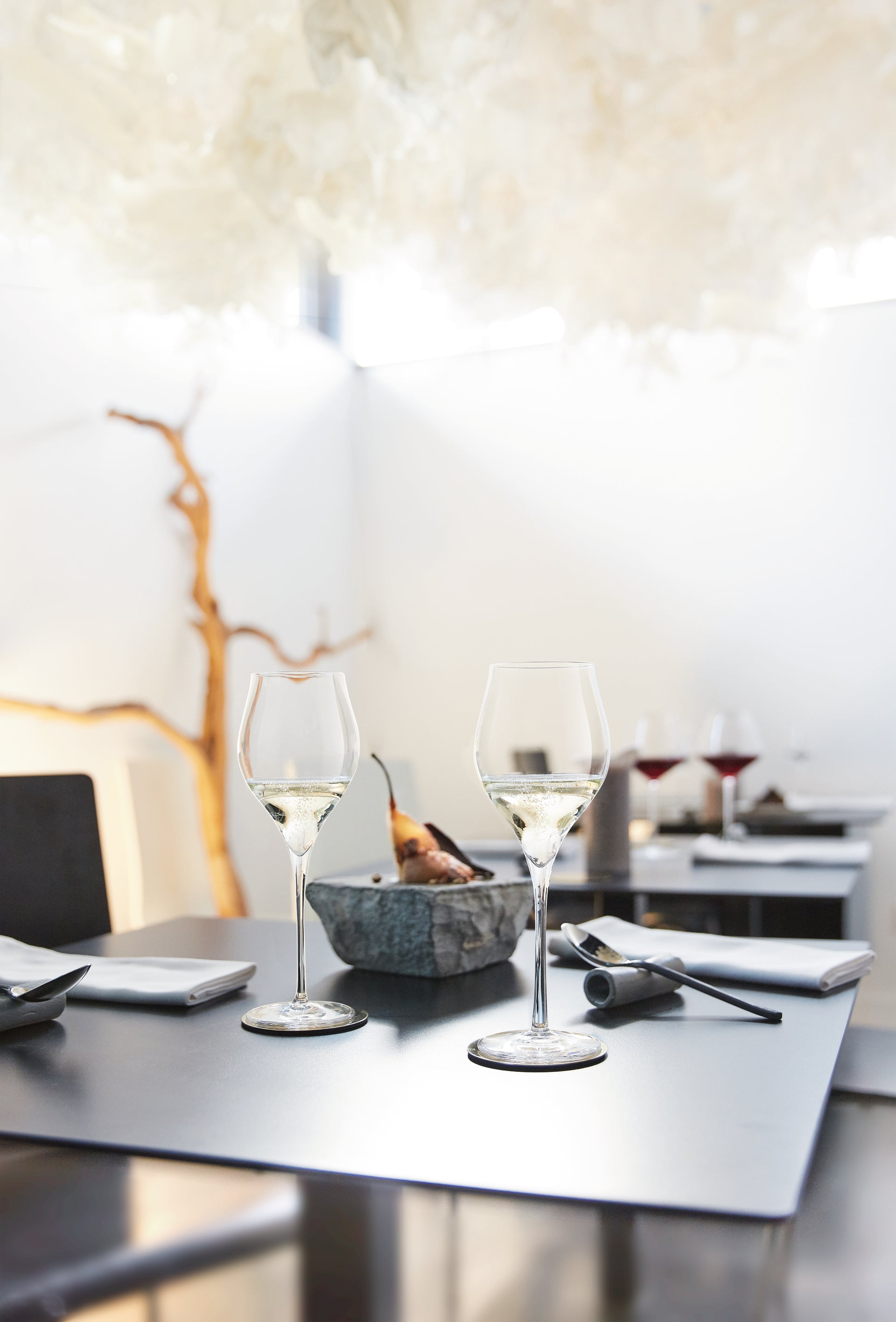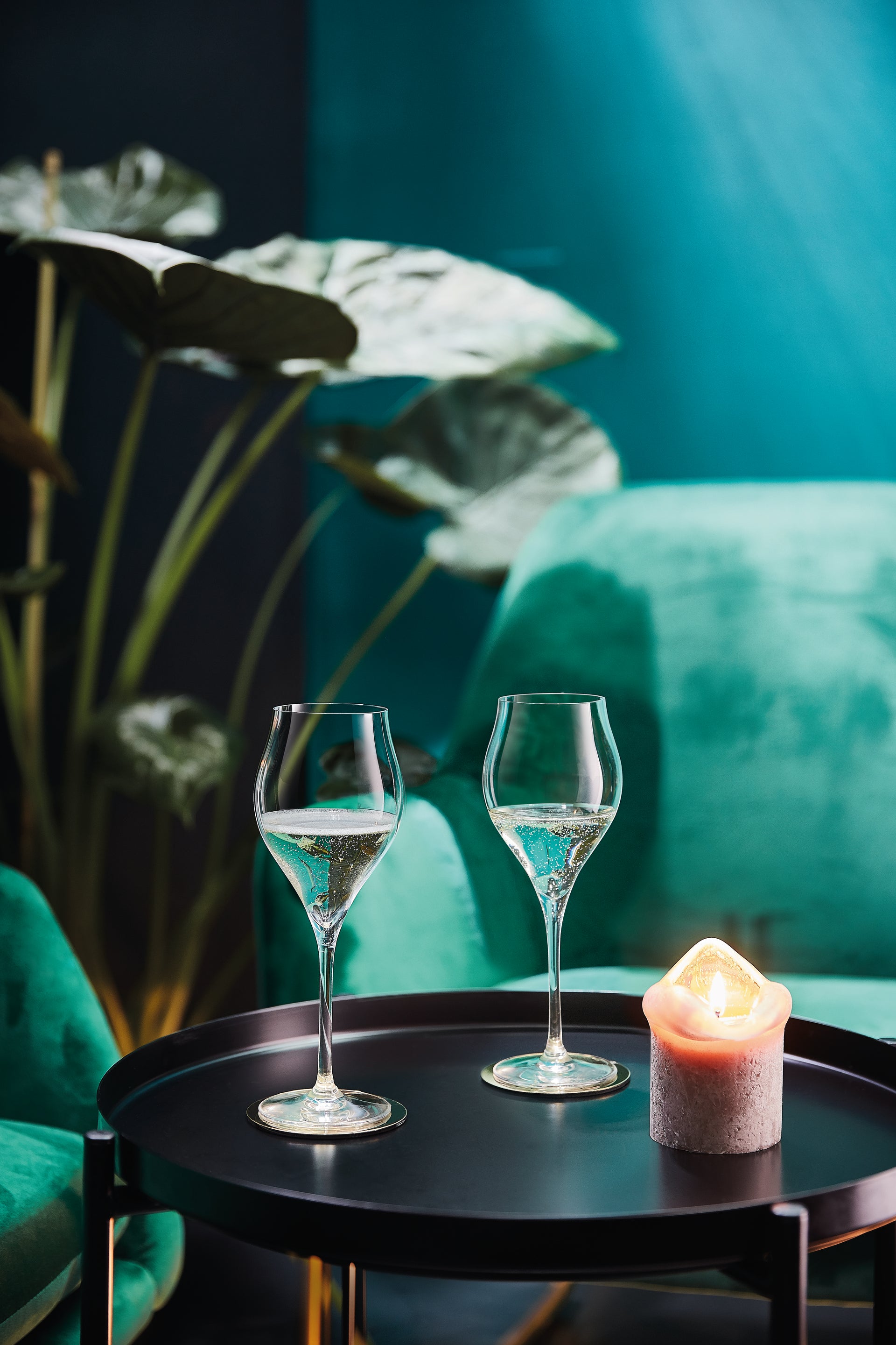 Die Stielglasserie EXALTATION verfügt über eine hervorstechende Kelchform, die das Aroma von Wein und Sekt bestens hervorhebt. Insbesondere der Moussierpunkt fördert ein deutlich sichtbares, unvergleichliches Aufschäumen bei Sekt und Champagner und verspricht ein aromatisches Erlebnis.