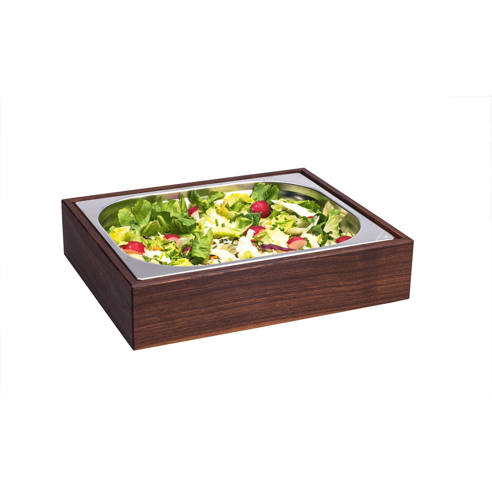 Stapelbare Rahmen aus geöltem Holz für das modulare Buffetsystem zur Aufnahme des Schneidbretteinsatzes, des Besteckkastens oder von GN-Tabletts bzw. -Behältern bis zu einer maximalen Tiefe von 65 mm.