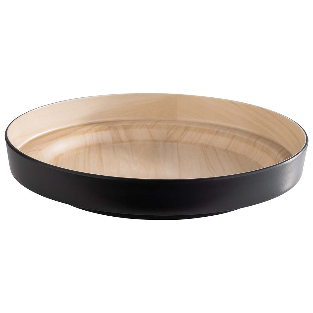 Edle Schale aus Melamin in Holzoptik inklusive Tropfschale. Melamin ist besonders robust und kratzfest, jedoch nicht mikrowellengeeignet.