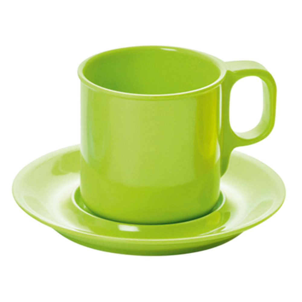 Mit Universal-Untertasse, passend für Kaffee-Obere und den Henkelbecher. Die bunten Farben bringen gute Laune auf den Tisch. Mittelschweres Geschirr mit guter Qualität aus Melamin, somit sehr widerstandsfähig, wenn auch nicht unzerbrechlich. Stapelfähig und spülmaschinengeeignet, nicht für die Mikrowelle geeignet.
