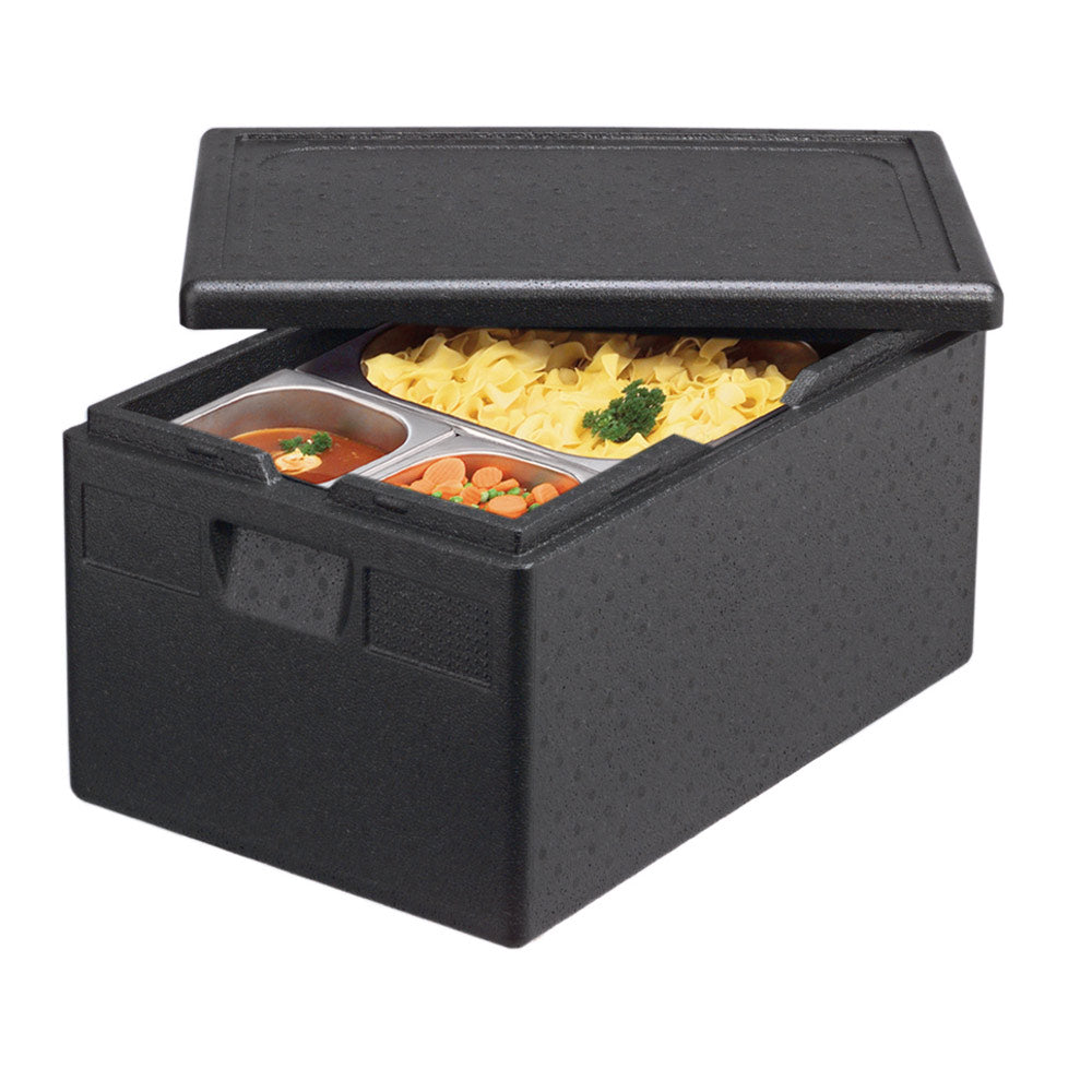 Mit abgerundeten Griffleisten und einfach zu öffnendem, dichtschließendem Deckel. Ideal für den Transport von Gastronorm-Behältern. Mit stirnseitigen Einsteckrahmen zur Kennzeichnung des Inhalts. Eingriffmulden innen erleichtern die Entnahme der Behälter. Innenmaß 53,8 x 33,7 cm - Außenmaß 60 x 40 cm. Zusätzlich mit Aufsätzen erweiterbar, durch Kühlakku kühlbar oder Warmhalteplatte beheizbar.