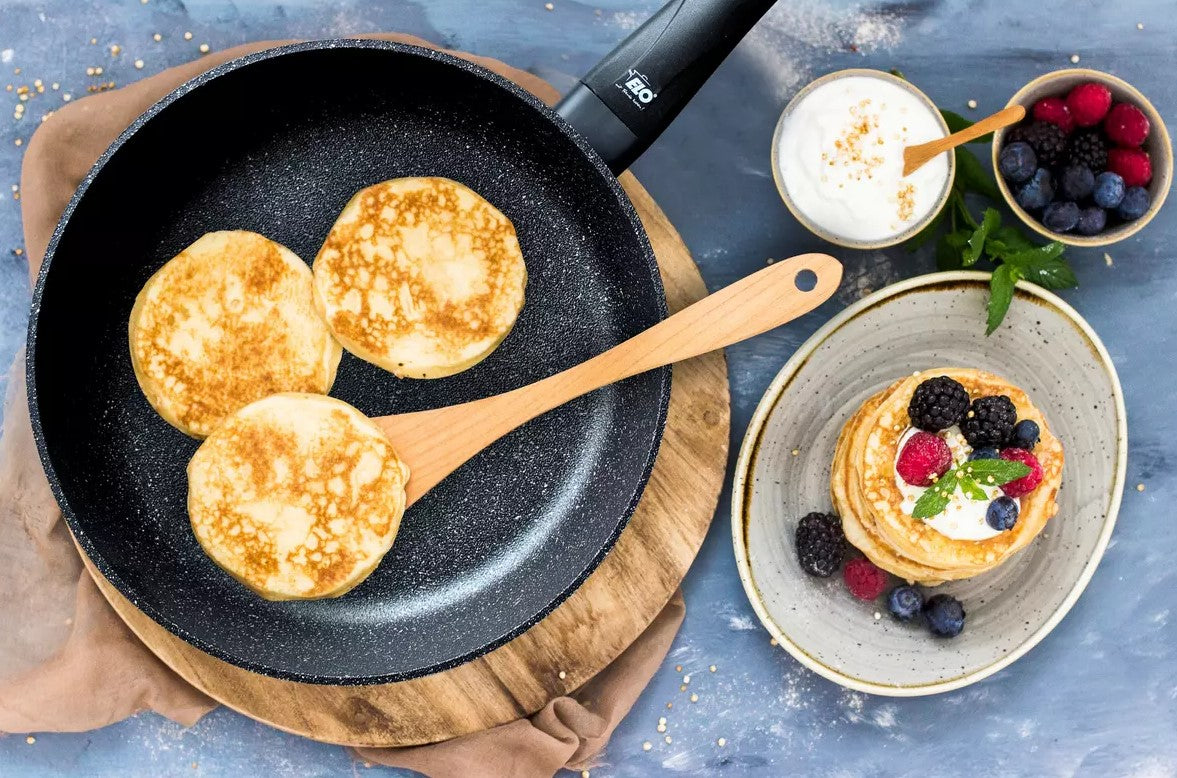 Die Granit Evolution Pfanne besteht aus hochwertig geschmiedetem Aluminium. Ein besonderes Merkmal ist die Mikro-Waben-Struktur, die eine spürbar raue Oberfläche bietet. Diese sorgt dafür, dass das Öl gleichmäßig verteilt wird und an der gewünschten Stelle bleibt.