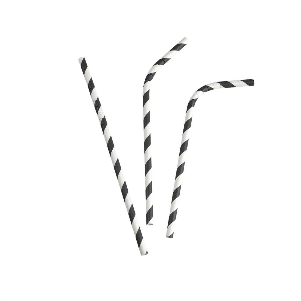 GREENHORN Papier-Trinkhalme flexibel - Ø 0,6 x 19,7 cm (100 Stück) - schwarz-weiß gestreift