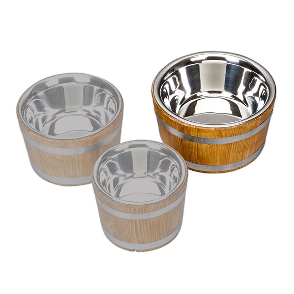Holzfass mit Edelstahlschüssel - Ø 30 x 20 cm - Inhalt 3,5 l