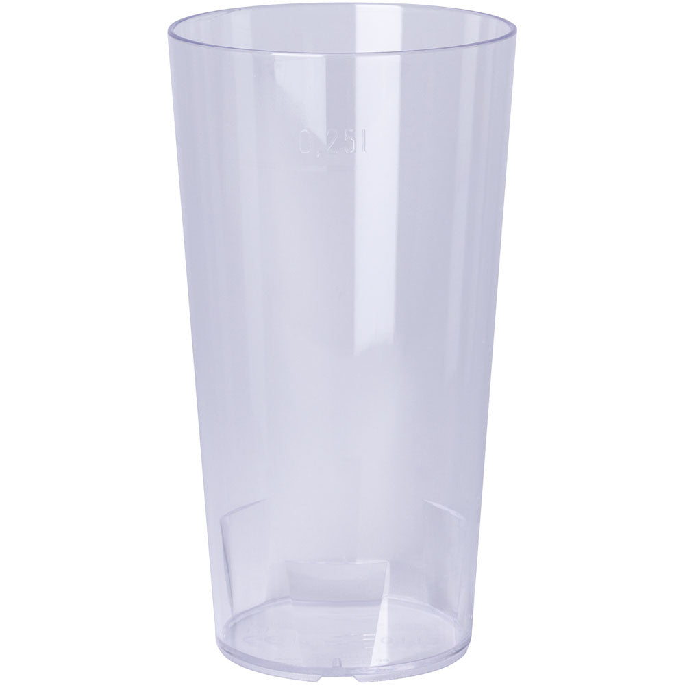 Der Mehrweg-Trinkbecher besteht aus widerstandsfähigem SAN-Kunststoff. Im harten Gastroalltag eine bruchsichere Alternative zu Glas. Der Becher ist glatt, glasklar und besitzt einen Füllstrich. Stapelbar, spülmaschinengeeignet und recycelbar.