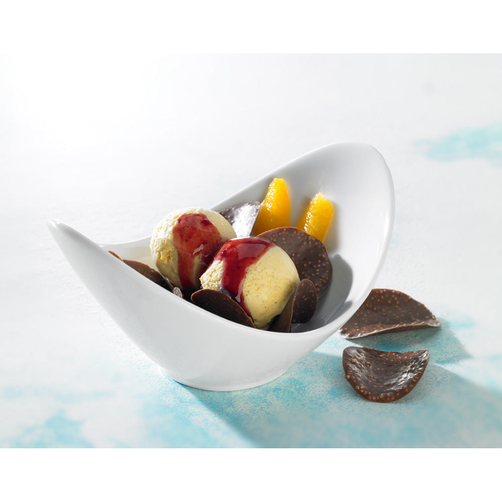 Exklusives Design für den gedeckten Tisch liefert "ana-Porzellan" mit diesen geschwungenen Schalen. Aus Hartporzellan mit hochweißer Glasur. Stapelfähig, spülmaschinen- und mikrowellenfest.