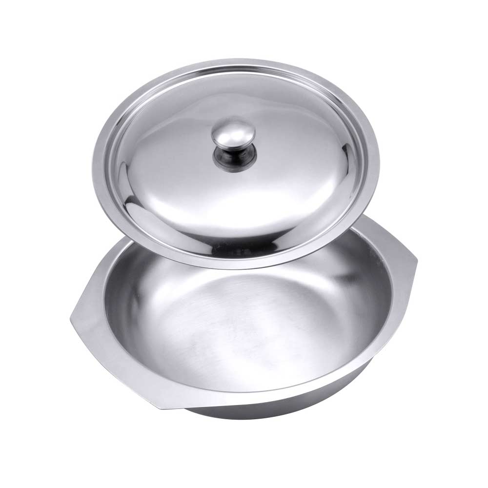 Knopfdeckel zu Beilagenschale Ø 14 cm (Artikelnummer 14878). Aus Edelstahl, hochglänzend, mittelschwere Qualität.