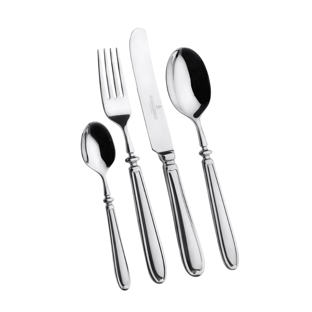 Rustikales Besteck in besonders hochwertiger, geschmiedeter Qualität. Aus rostfreiem Chromnickelstahl 18/10, hochpoliert und spülmaschinenfest. Die Materialstärke beträgt 7,0 mm. Gewicht Tafelmesser 104 g.