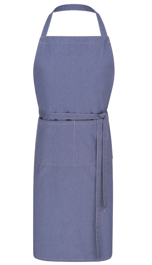 Preisgünstige, momentan sehr trendige Unisex-Schürzen und Vorbinder mit Taschen im modernen Jeans-Look aus Mischgewebe (65% Polyester, 35% Baumwolle - 230g/m²). Waschbar bis 60°C.