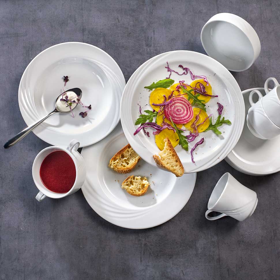 • hochweißes Hotelporzellan in überzeugender Qualität