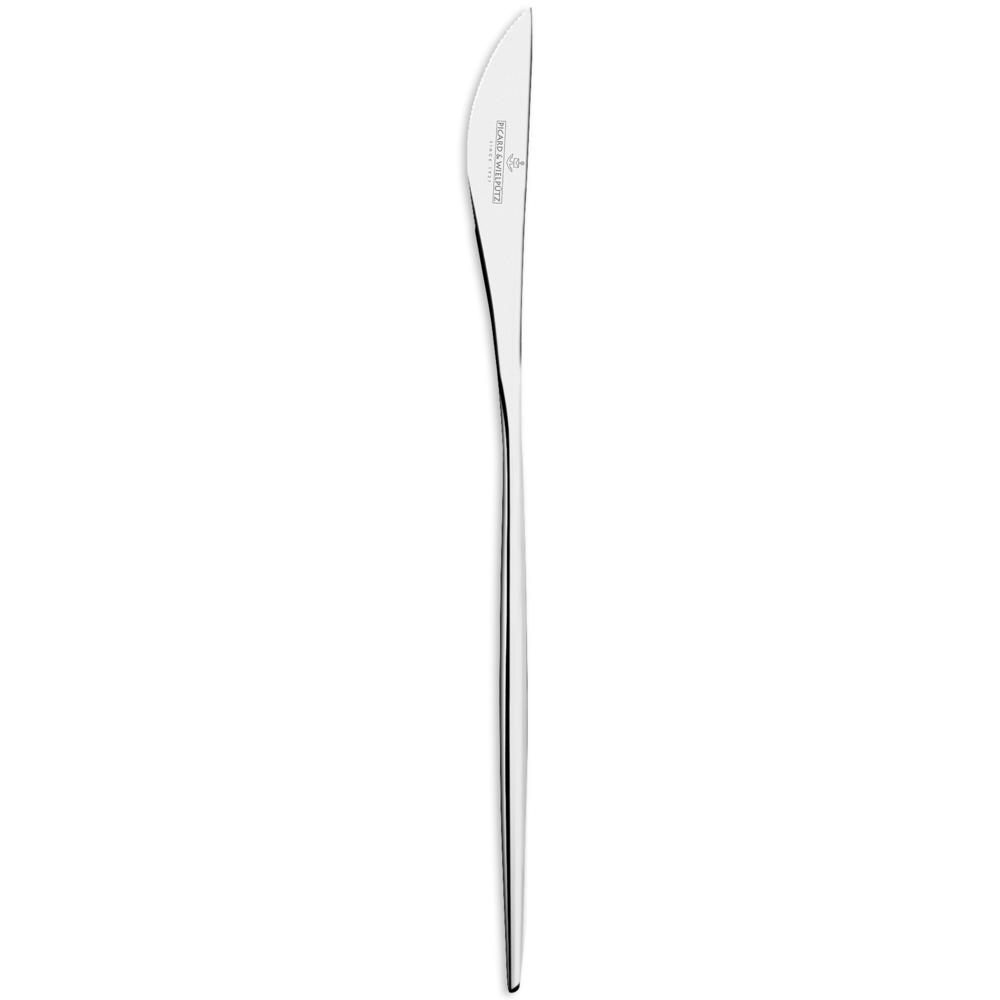 Das Menümesser der Lotus Serie ist ein wahres Meisterwerk der Tischkultur. Inspiriert von der zarten Lotusblüte, besticht es durch sein langgezogenes, filigranes Design, das pure Eleganz ausstrahlt. Die schlanke Form wird durch die geschmiedete Verarbeitung und eine Materialstärke von 7,5 mm ergänzt, sodass es trotz seiner grazilen Erscheinung angenehm und sicher in der Hand liegt.