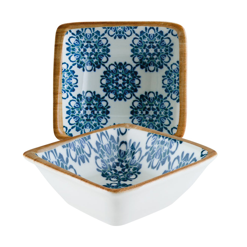 Die Serien CALIF, LUPIN und LOTUS erinnern mit ihrem blau-weißen Muster an das Mittelmeer. Der mediterrane Stil, die Farben und Muster finden sich in dem einzigartigen Design der Porzellanserie wieder. Auch diese Serie geht auf das Konzept "Mix and Match" ein - und so sind die drei Design untereinander kombinierbar. Die Artikel sind mittels hochwertigem digitalen Druck, welcher eine Vielzahl von unterschiedlichen Farb-Muster und Texturoptionen ermöglicht, dekoriert. Die Artikel der Serien CALIF, LUPIN und LOTUS sind mikrowellen- und spülmaschinenfest. Bis auf die kleinen Vanta Schrägschüsseln gibt der Hersteller auf alle Artikel eine lebenslange Kantenbruch-Garantie. Die kleine Schale eignet sich besonders für kleine Beilagen, Dips und das Servieren von Antipasti.