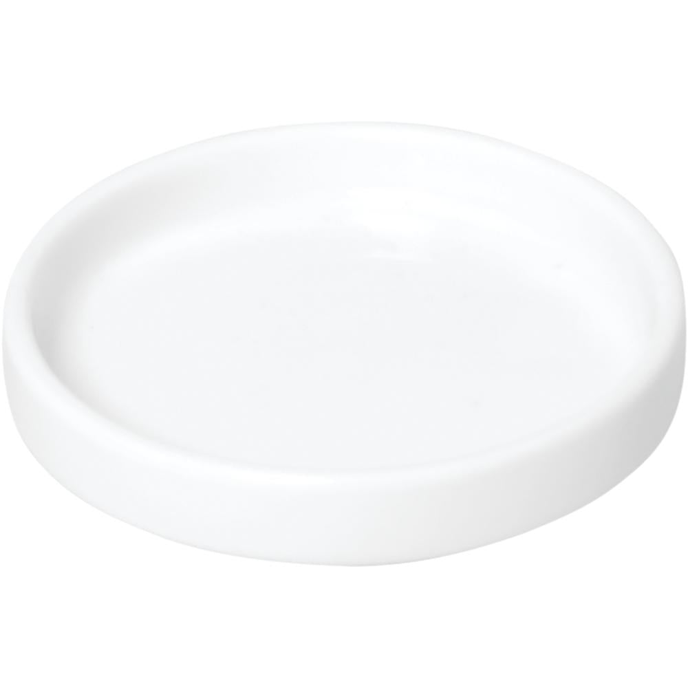Runde, stapelbare Platte aus spülmaschinenfestem, reinweißem Hartporzellan. Ø 8 x 1,7 cm.