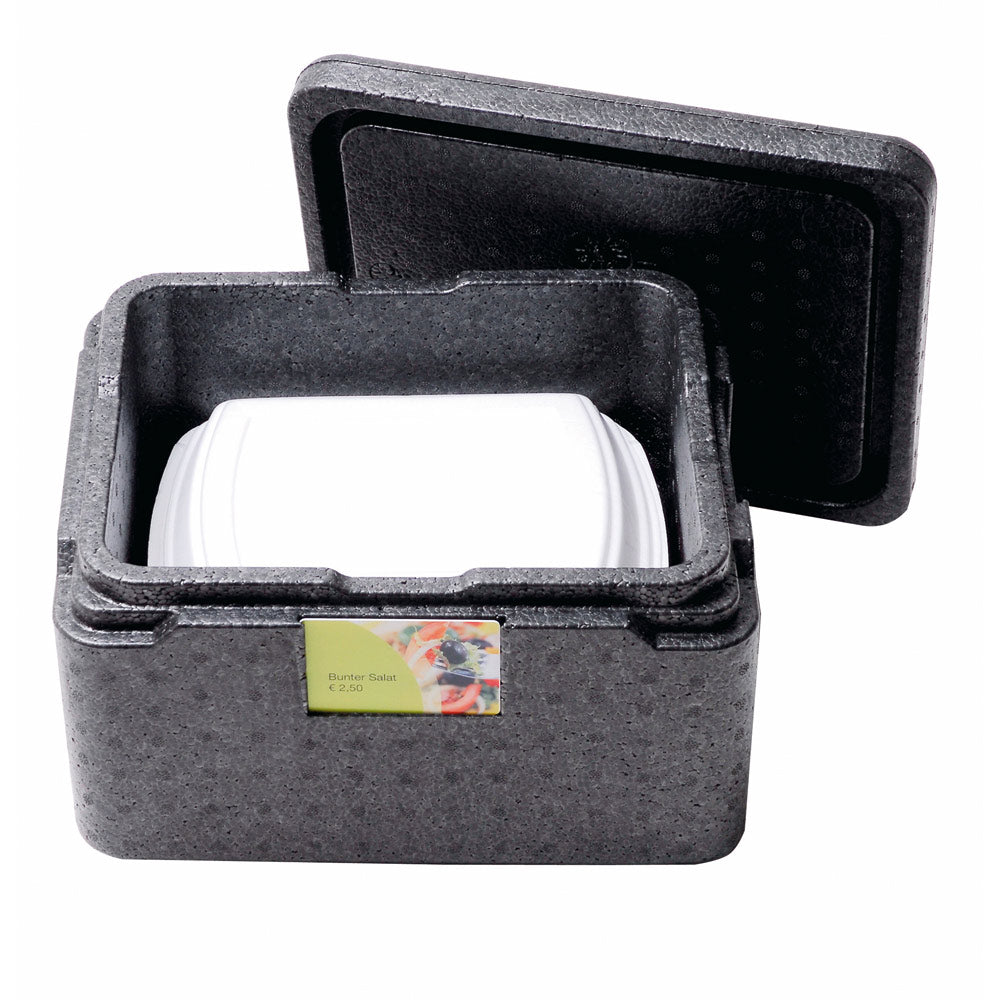 Passend für alle marktgängigen Einweg- & Mehrweg-Menüschalen! Bewährt in Großküchen, ideal für Betriebs- und Sozialverpflegung und "Essen auf Rädern". Komplett aus FCKW-frei geschäumtem PP-Kunststoff (EPP). Bruchfest, langlebig, hygienisch, geschmacksneutral, recyclebar und temperaturbeständig von -40° bis +120° C. Mit dichtschließendem Klemmdeckel. Stapelbar und spülmaschinengeeignet. Ausführung für einen Stapel Menüschalen. Mit schmal- und breitseitigen Einsteckrahmen zur Kennzeichnung des Inhalts. Innenmaß 25,5 x 20,5 cm Außenmaß 30,5 x 25,5 cm Höhe siehe Artikel.