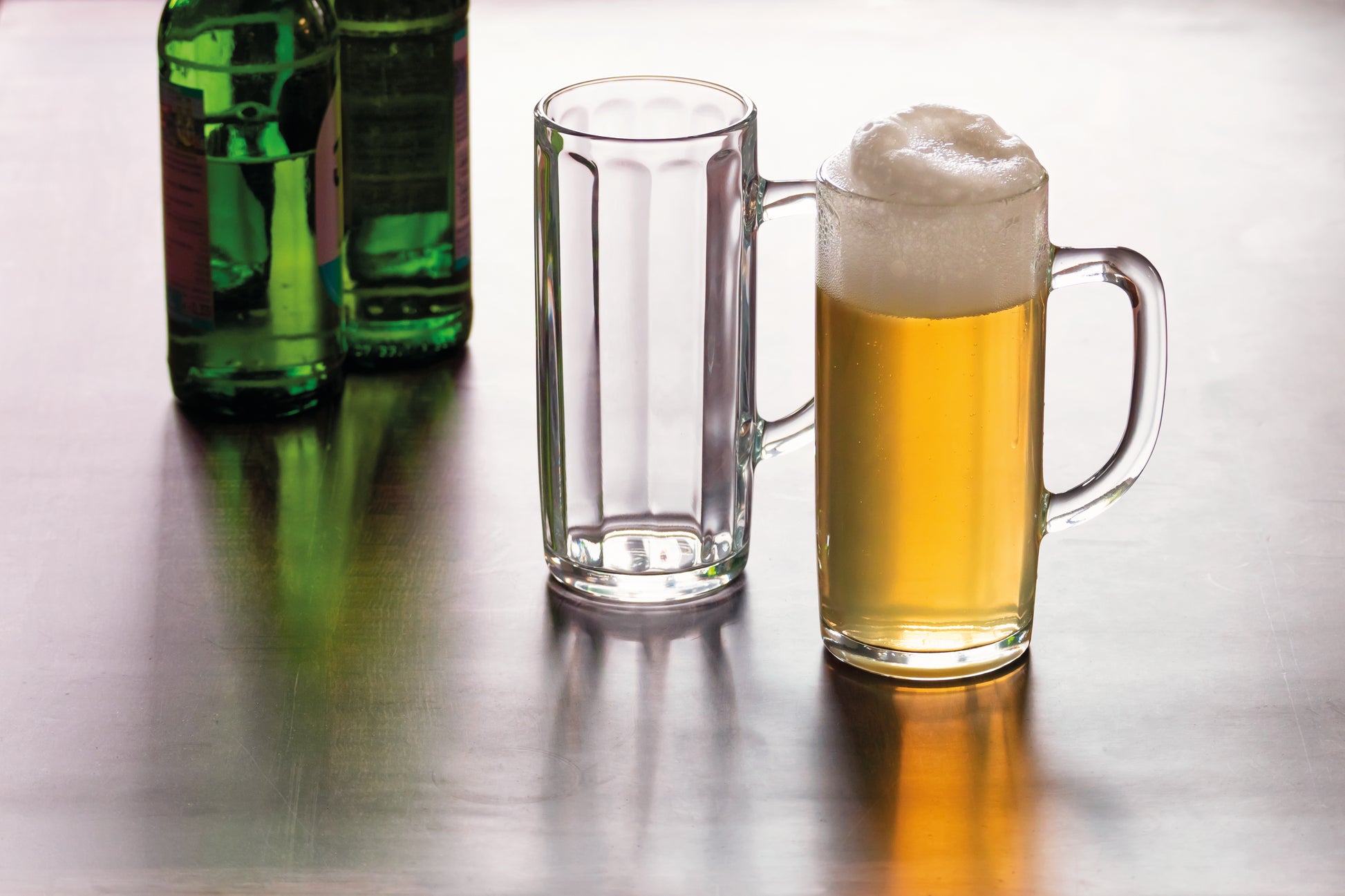 Die Bierseidel-Serie MINDEN besteht aus dickwandigen Gläsern mit Streifen in Reliefstruktur. Der stabile Henkel und das robustes Glas sorgen für eine langlebigen Einsatz. Aus spülmaschinenfestem Glas mit Füllstrich.