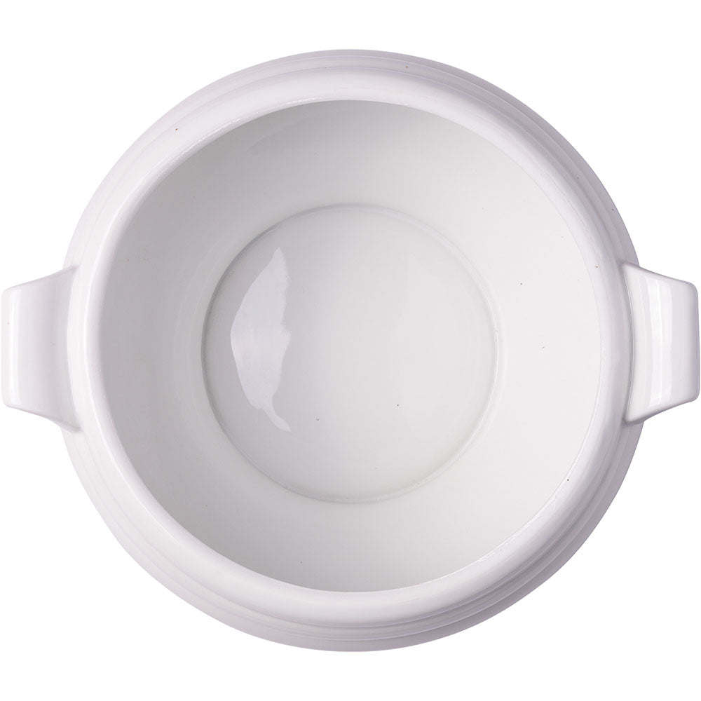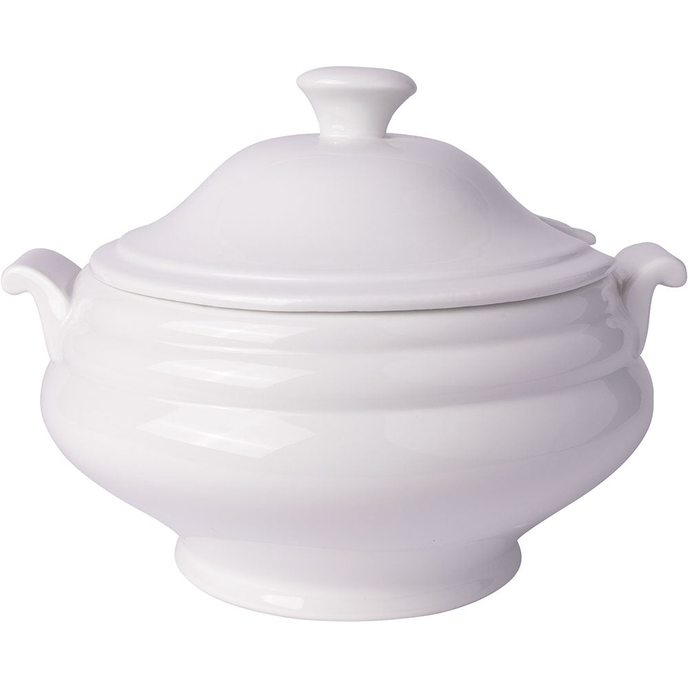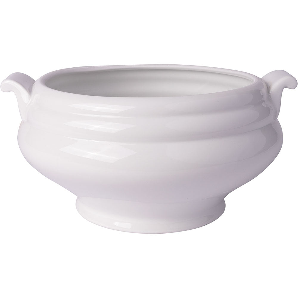 Große Terrine mit separat erhältlichem Deckel. Inhalt 3,2 l. Der obere Rand der Terrine ist aus produktionstechnischen Gründen nicht glasiert, stapelbar.