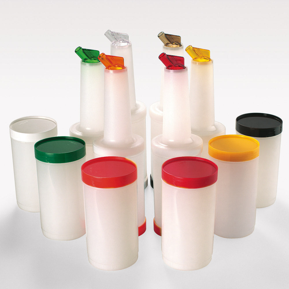 Perfekt zur Lagerung und Dosierung nahezu jeder Flüssigkeit. Der Ausgießer (Ø 11 mm) mit spezieller Luftzufuhr garantiert ein sauberes Dosieren. Der Behälter mit einem Inhalt von 1 Liter und der Deckel bestehen aus PP-Kunststoff, der farbkodierte Ausgießer aus SAN-Kunststoff, komplett spülmaschinenfest. Ø 9 x 33,5 cm.