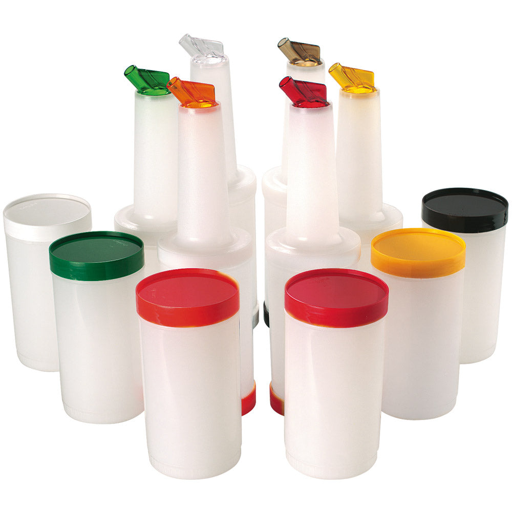 Perfekt zur Lagerung und Dosierung nahezu jeder Flüssigkeit. Der Ausgießer (Ø 11 mm) mit spezieller Luftzufuhr garantiert ein sauberes Dosieren. Der Behälter mit einem Inhalt von 1 Liter und der Deckel bestehen aus PP-Kunststoff, der farbkodierte Ausgießer aus SAN-Kunststoff, komplett spülmaschinenfest. Ø 9 x 33,5 cm.