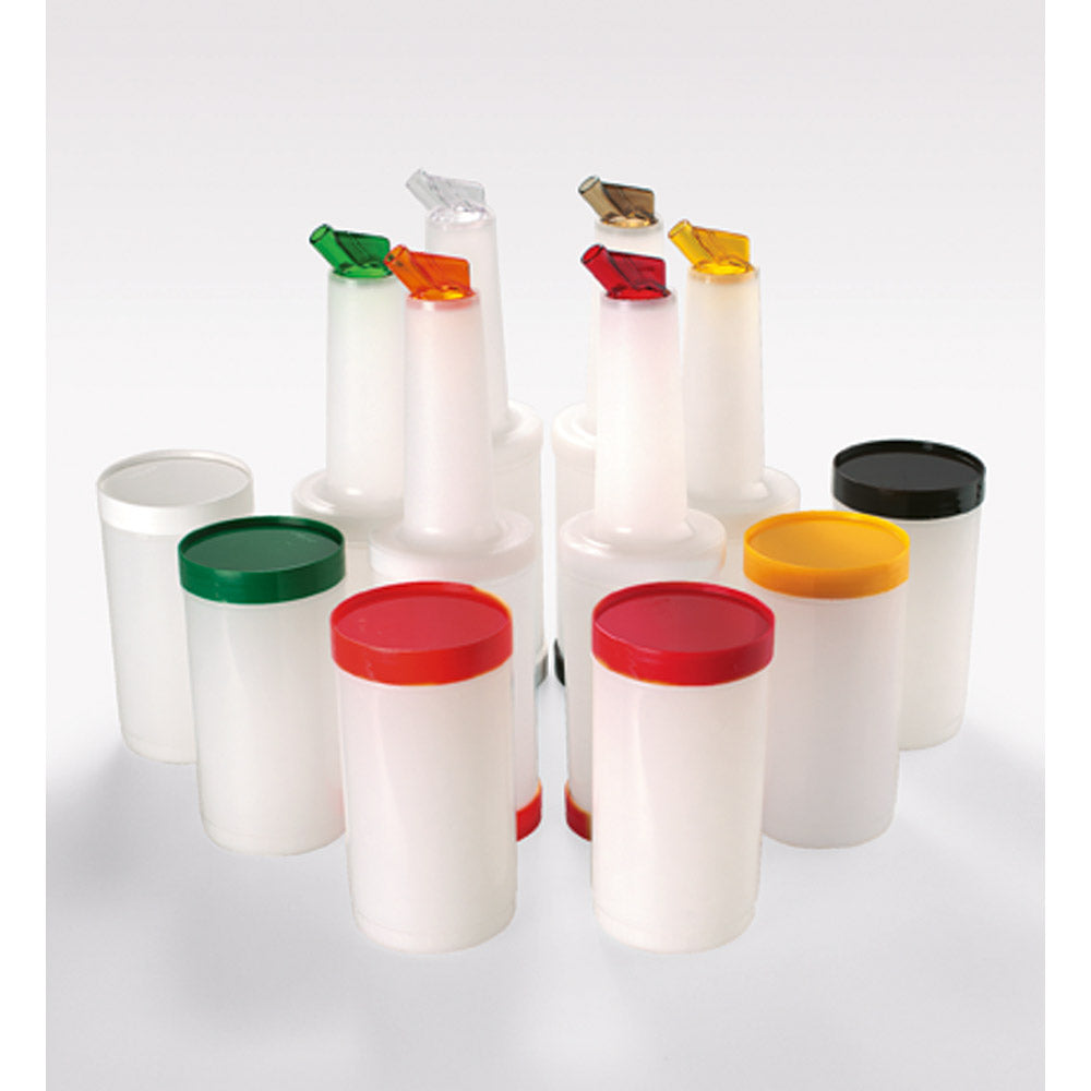 Perfekt zur Lagerung und Dosierung nahezu jeder Flüssigkeit. Der Ausgießer (Ø 11 mm) mit spezieller Luftzufuhr garantiert ein sauberes Dosieren. Der Behälter mit einem Inhalt von 1 Liter und der Deckel bestehen aus PP-Kunststoff, der farbkodierte Ausgießer aus SAN-Kunststoff, komplett spülmaschinenfest. Ø 9 x 33,5 cm.