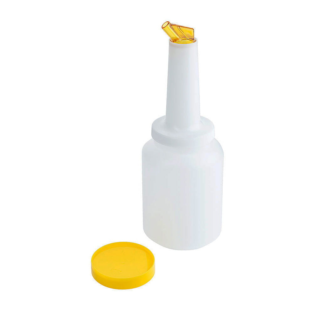 Perfekt zur Lagerung und Dosierung nahezu jeder Flüssigkeit. Der Ausgießer (Ø 11 mm) mit spezieller Luftzufuhr garantiert ein sauberes Dosieren. Der Behälter und der Deckel bestehen aus PP-Kunststoff, der farbkodierte Ausgießer aus SAN-Kunststoff, komplett spülmaschinenfest.