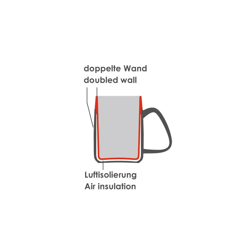 Diese Thermo-Henkelbecher verfügen über ein Doppelwandsystem mit Luftisolierung. Für größtmögliche Sicherheit beim täglichen Gebrauch sorgen die klare und moderne Zweifarbenoptik sowie der groß dimensionierte Henkel. Sie bestehen aus mikrowellenfestem PP-Kunststoff und sind mit diversen Trinkaufsätzen kombinierbar. Inhalt 320 ml, Ø 8,1 x 10,9 cm, spülmaschinenfest. Lieferzeit ca. eine Woche.