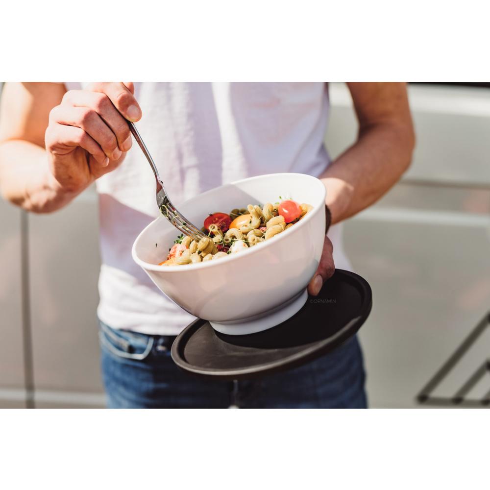 Die viereckige Schale eignet sich besonders für Gerichte, wo Komponenten geschnitten werden müssen. Dank der praktischen Höhe und dem dicht schließenden Deckel läuft nichts aus und sie kann sicher transportiert werden. Speisen können direkt in der Schale erhitzt (ohne Deckel bei max. 2 min/ 600 W) oder aber kühl (bis -25° C) gelagert werden. Nach der Nutzung kann die Schale in der Spülmaschine gesäubert werden und platzsparend gestapelt werden. Aus BPA-freiem SAN-Kunststoff.