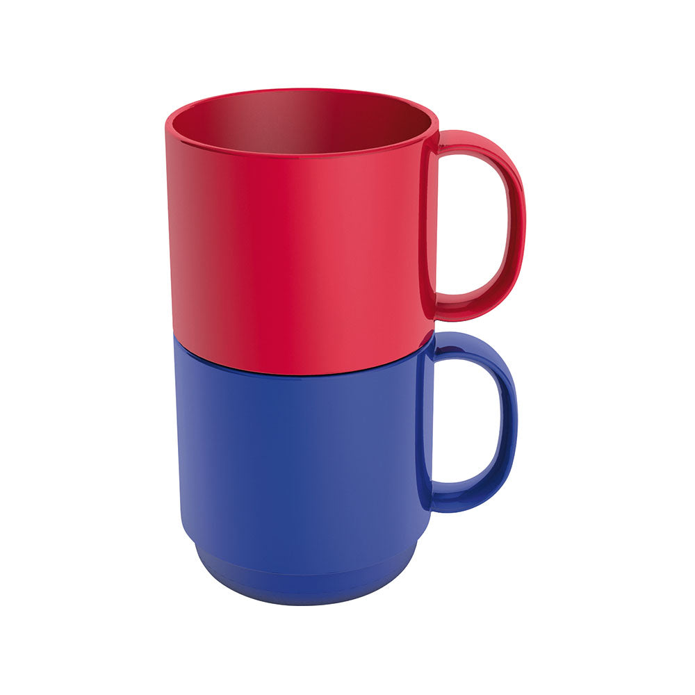 Klassischer Henkelbecher aus PP-Kunststoff, stapelbar, mikrowellen- und spülmaschinenfest. Der Becher ist in der Praxis sehr beliebt, da er besonders standfest ist und der große Henkel eine optimale und sichere Handhabung gewährleistet. Zudem ist er, genau wie die klassische Tasse 501, aufgrund seines speziellen Stapelrandes besonders einfach und gut stapelbar. Inhalt 350 ml - Ø 7,9 x 10,2 cm. Lieferzeit ca. 1 Woche.