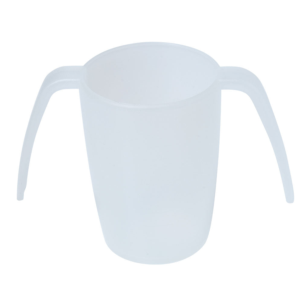 Die ideale Lösung für bspw. Tremorpatienten. Mit seinen beiden Henkeln gibt es kein Wackeln und kein Verschütten mehr. Zur einfachen und schnellen Inhaltskontrolle verfügt der 2-Henkel-Becher über eine Skala auf der Innenseite des Bechers.Noch einfacher geht es mit einem der separat erhältlichen Aufsätze. Stapelbares Unterteil, Inhalt 25 cl - Ø 7 x 10 cm. Alle Teile aus geruchs- und geschmacksneutralem PP-Kunststoff. Bruchunempfindlich, formstabil und spülmaschinenfest. Lieferzeit ca. 1 Woche.