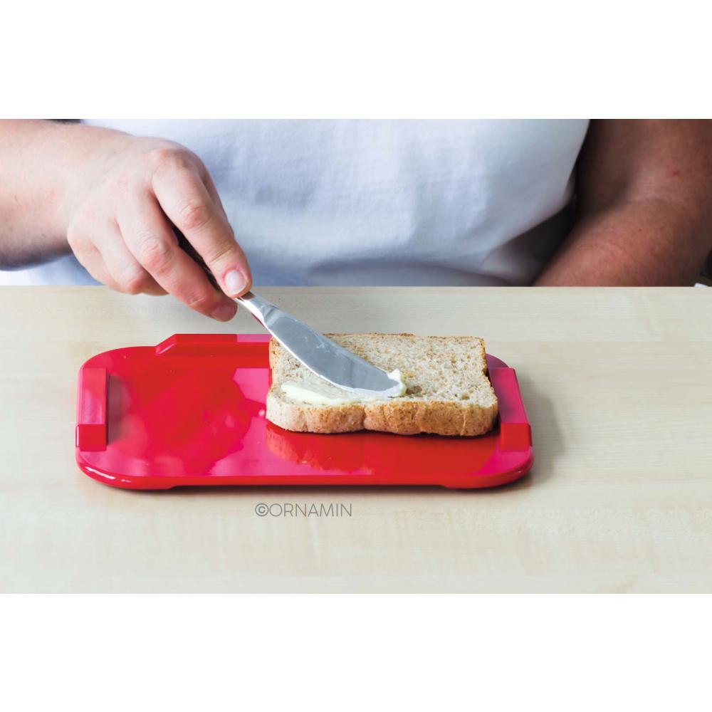 Aus schwerem Melamin - für eine selbstständige Zubereitung trotz körperlicher Einschränkung. Der an drei Seiten erhöhte Rand verhindert ein Verrutschen der Speisen. Der Antirutsch-Ring auf der Unterseite gibt zusätzlich sicheren Halt. Sowohl für Links- als auch Rechtshänder geeignet. Größe 22 x 17 cm. Stapelbar und spülmaschinenfest. Lieferzeit ca. eine Woche.