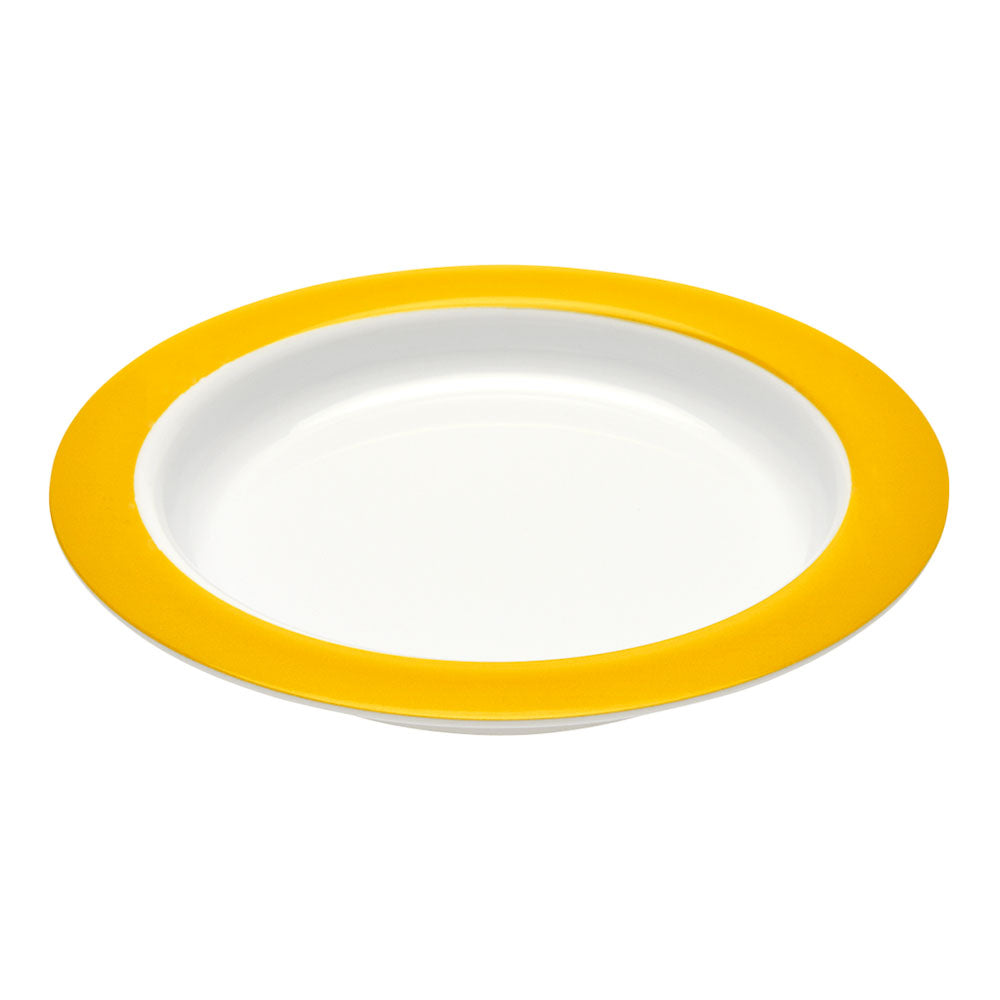 Überhang im Tellerrand: Ermöglicht einfaches Aufschieben des Essens auf Löffel oder Gabel.