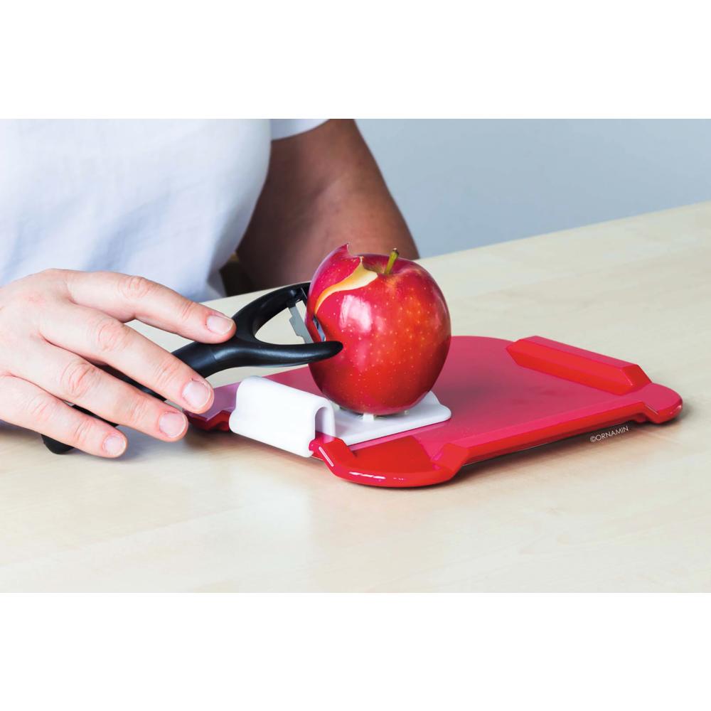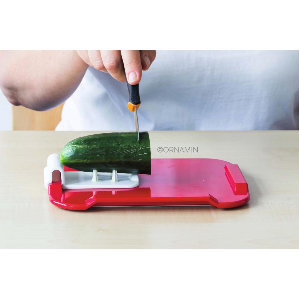 Die Zubereitungshilfe gibt sowohl Brötchen als auch Gurken, Käse oder anderen Lebensmitteln einen perfekten Halt beim Schneiden und Zubereiten, sodass beim Schneiden und Schmieren kein Verrutschen möglich ist. Sie kann einhändig mit nur einem Handgriff auf die drei erhöhten Ränder der Essbrettchen - Modell 900 aufgesteckt werden. Aufgrund der praktischen Lasche kann die Zubereitungshilfe genauso einfach wieder abgenommen werden.