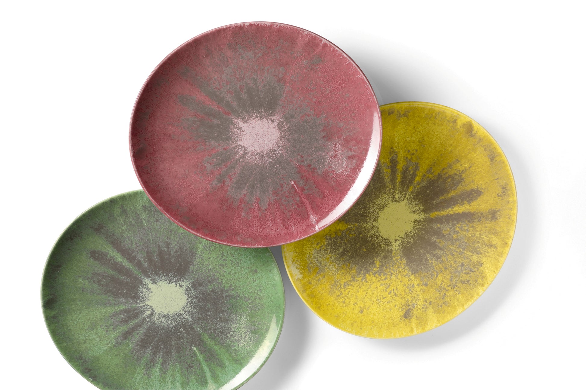 - Farbenfrohe und auffällig gestaltete Geschirrserie in Batik Optik