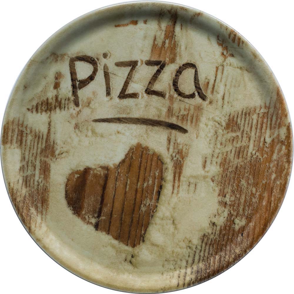 Volldekorierter Pizzateller mit einem Durchmesser von 33 cm. Stapelbar, spülmaschinenfest.
