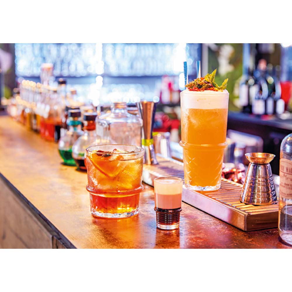 Stapelbare Becherglasserie mit filigranem Relief, aber wegen des gehärteten Glases ist sie gleichzeitig für den robusten Einsatz geeignet. Spülmaschinenfest, Longdrinkgläser ohne Füllstrich.