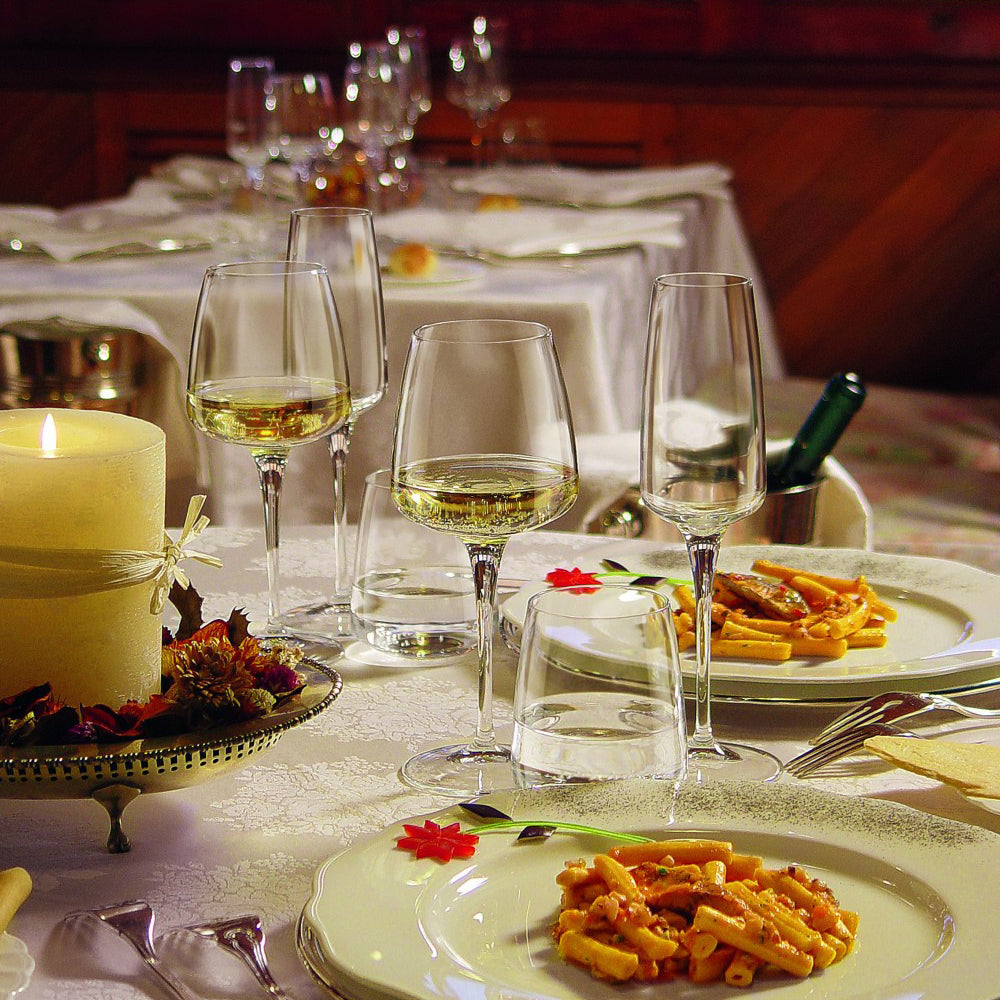 Angesagte Weinglasserie mit nahezu geradem Glas-Boden aus dem Hause Bormioli. Die Serie besteht aus hochwertigem Kristallglas mit dünnen Mundrändern, niedrigem Gewicht des einzelnen Glases und reduzierter Wandstärke. Dank der XLT-Behandlung des Glases, einer Biormioli Rocco Technologie, ist die Stieloberfläche gegen die häufigsten bruchursachen geschützt. Das zeitgemäße Design und die schlichte Eleganz machen es zu einem Hingucker auf dem gedeckten Tisch!