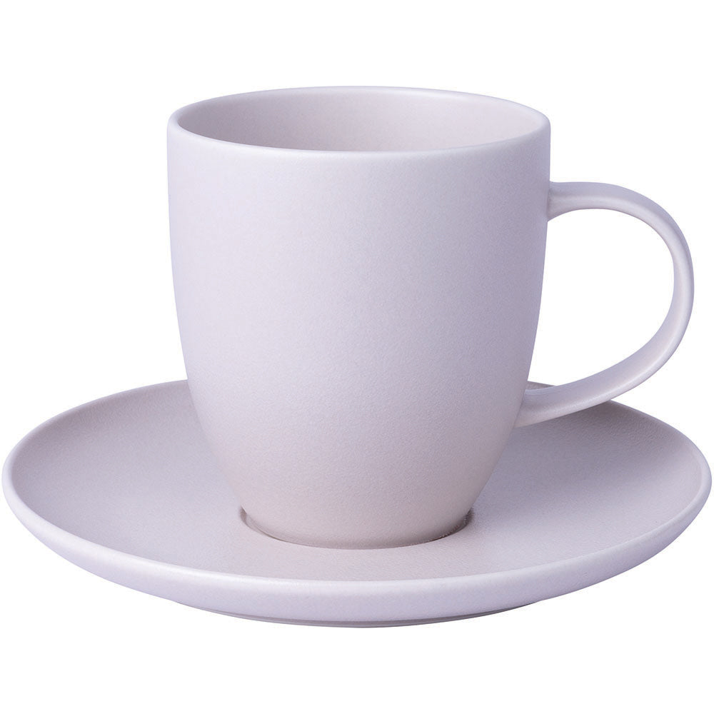 Der hellgrau mattierte Henkelbecher mit einer leicht rauen Textur sorgt für eine kontrastreiche Präsentation Ihrer Heißgetränke. Es ist ein optisches und haptisches Highlight auf jedem Tisch! Die Serie eignet sich mit modernem und eleganten Design für Cafés, Restaurants und Hotels. Das hochwertige Hotelporzellan mit bester Glasur ist spülmaschinen- und mikrowellenfest.