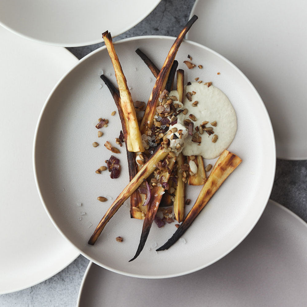 Die leicht raue Textur absorbiert das Licht und sorgt für ein matten Effekt auf der Porzellan-Oberfläche. Das hochwertige Hotelporzellan hat eine schnittfeste Glasur und ist spülmaschinen- und mikrowellenfest.