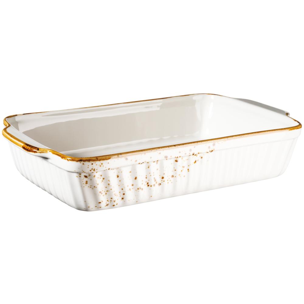 PINTAR Auflaufform - 325 cl - (36,4 x 22,3 x 6,6 cm) - Weiß mit braunen Punkten