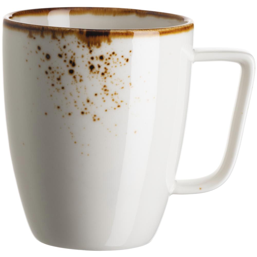 Das cremige Weiß mit den charakteristischen braunen Sprenkeln verleiht dem Becher einen charmanten Handmade-Look mit modernem Vintage-Charakter. Die klare Form und der praktische Henkel machen ihn zu einem Alltagsliebling mit besonderem Flair.