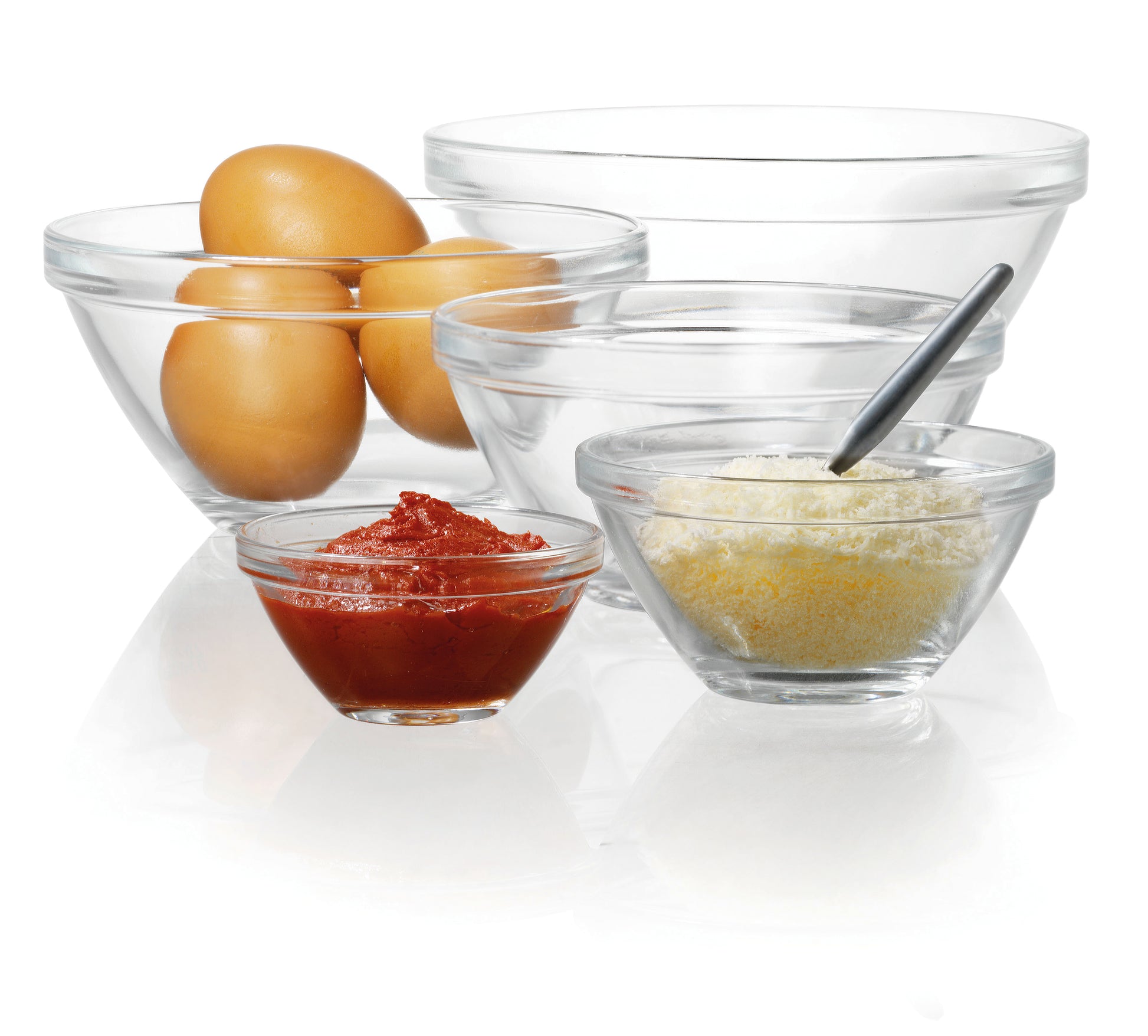 Eine vielseitige Glasschale aus robustem gehärtetem Glas, ideal für jede Gelegenheit. Platzsparend stapelbar und für die einfache Reinigung spülmaschinenfest.