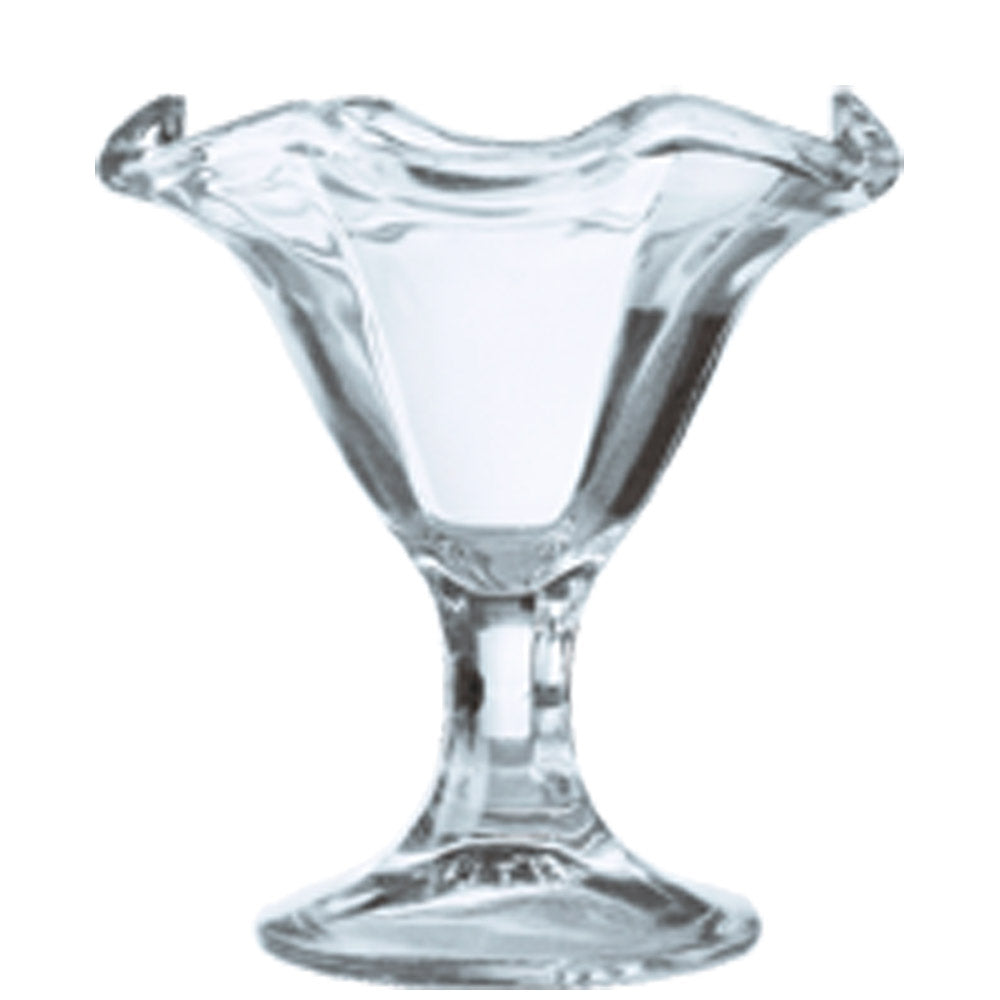 Die Eisschale Primavera ist Ø 13,5 x 13,7 cm groß und bietet somit Platz für einen Inhalt von 23 cl. Sie besteht aus spülmaschinenfestem Glas und hat einen Standfuß. Die Form des Dessertglases erinnert an eine Blume und wird somit dem Namen Primavera gerecht, da es an den Frühling erinnert. Zum Anrichten von Eis und Desserts in Eisdielen, Restaurants und Hotels.