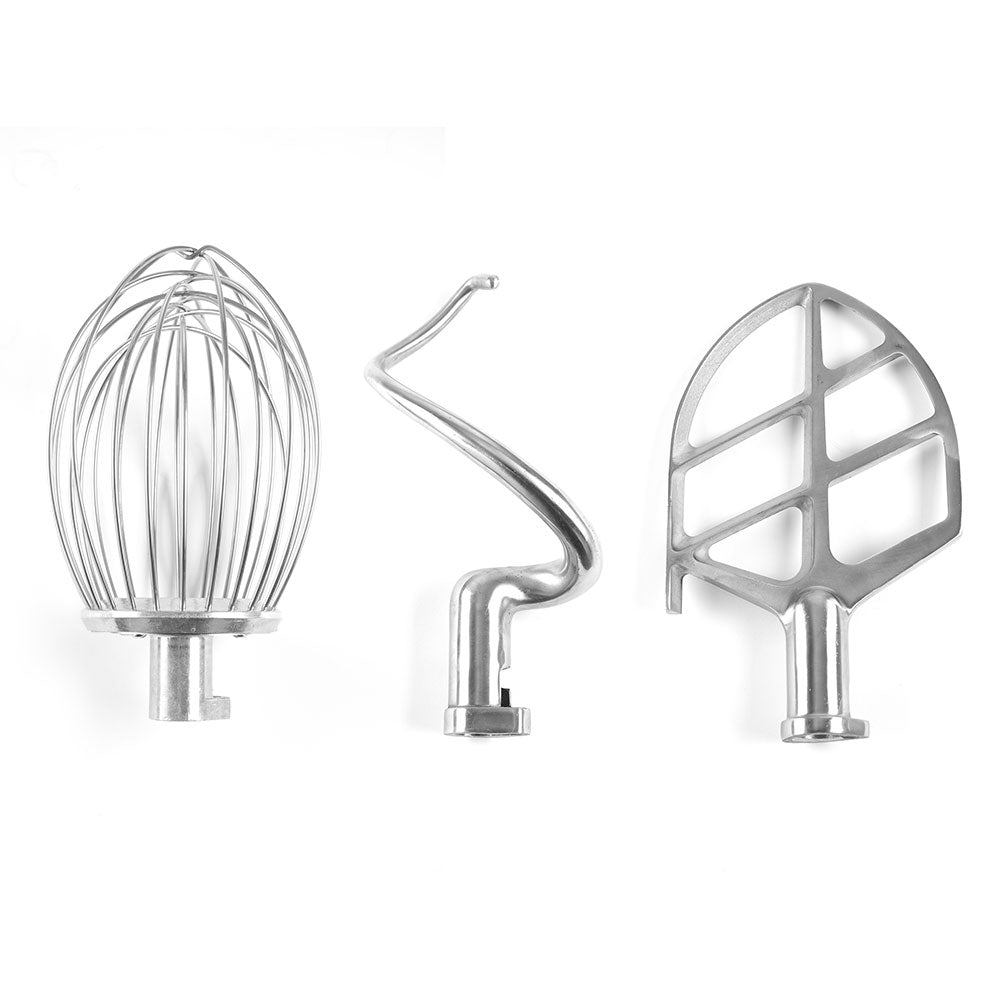 - Zubehör aus Edelstahl AISI 430: Schneebesen, Flachrühraufsatz und Teighaken