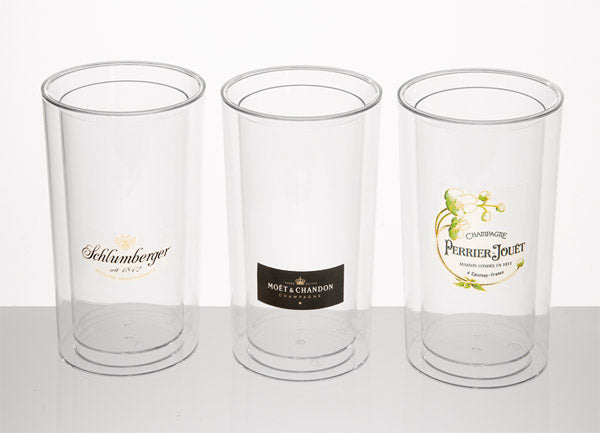 Flaschenkühler aus doppelwandigem, spülmaschinenfestem SAN-Kunststoff. Für Flaschen bis zu einem Durchmesser von 10,5 cm. Gesamtgröße Ø 13,5 x 23 cm. Lieferzeit ca. eine Woche.