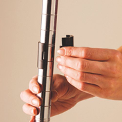 Regal-Clips (1 Paar) aus schwarzem Kunststoff zur Befestigung von Regalböden, -körben oder Hängestangen und Gitter an den Regalstangen.