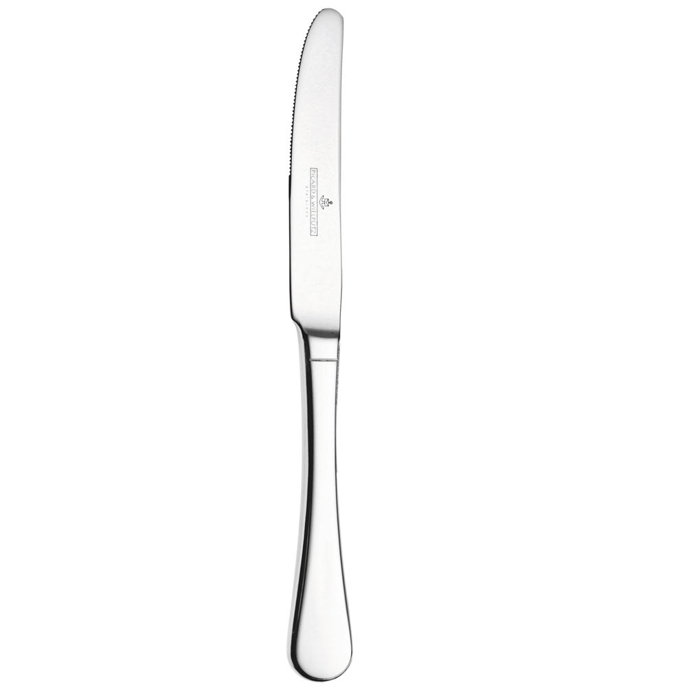 Rostfreier Chromnickelstahl 18/10 - hochglanzpoliert und spülmaschinenfest. Materialstärke 3,0 mm. Gewicht Tafelmesser 118 g.