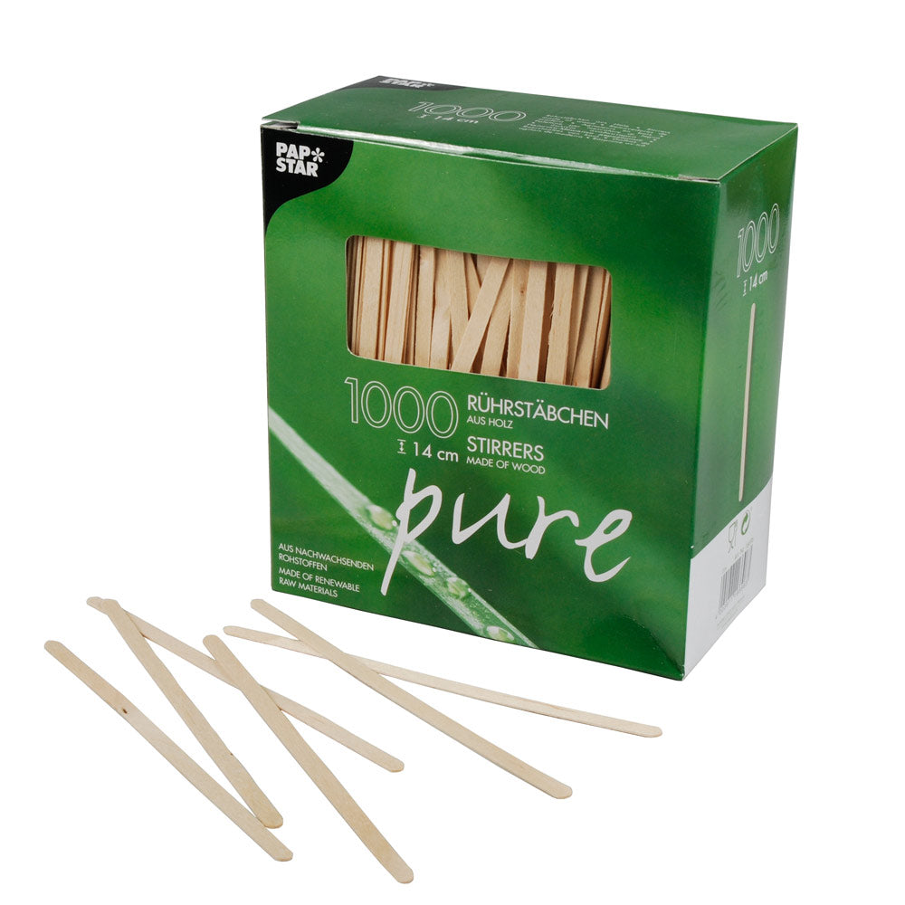 Rührstäbchen Holz "pure" 14 x 0,5 cm (10 x 1000 Stück)