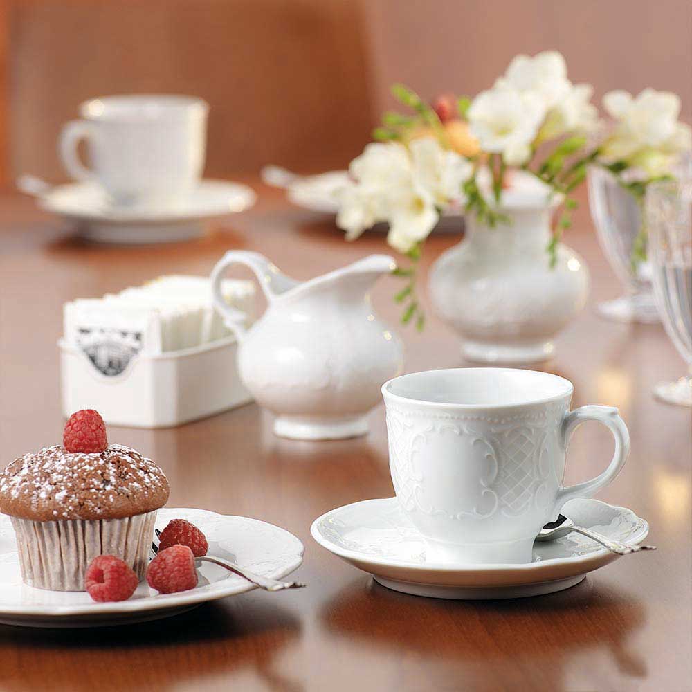 Die filigrane, im Rokokostil gestaltete Form aus reinweißem Hotelporzellan macht diese Serie zur I. Wahl. Qualität, die begeistert!