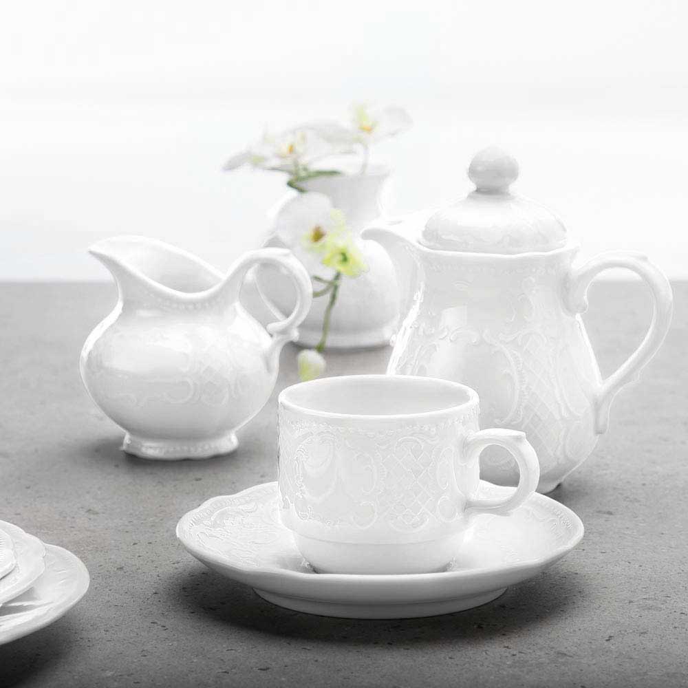 Die filigrane, im Rokokostil gestaltete Form aus reinweißem Hotelporzellan macht diese Serie zur I. Wahl. Qualität, die begeistert!