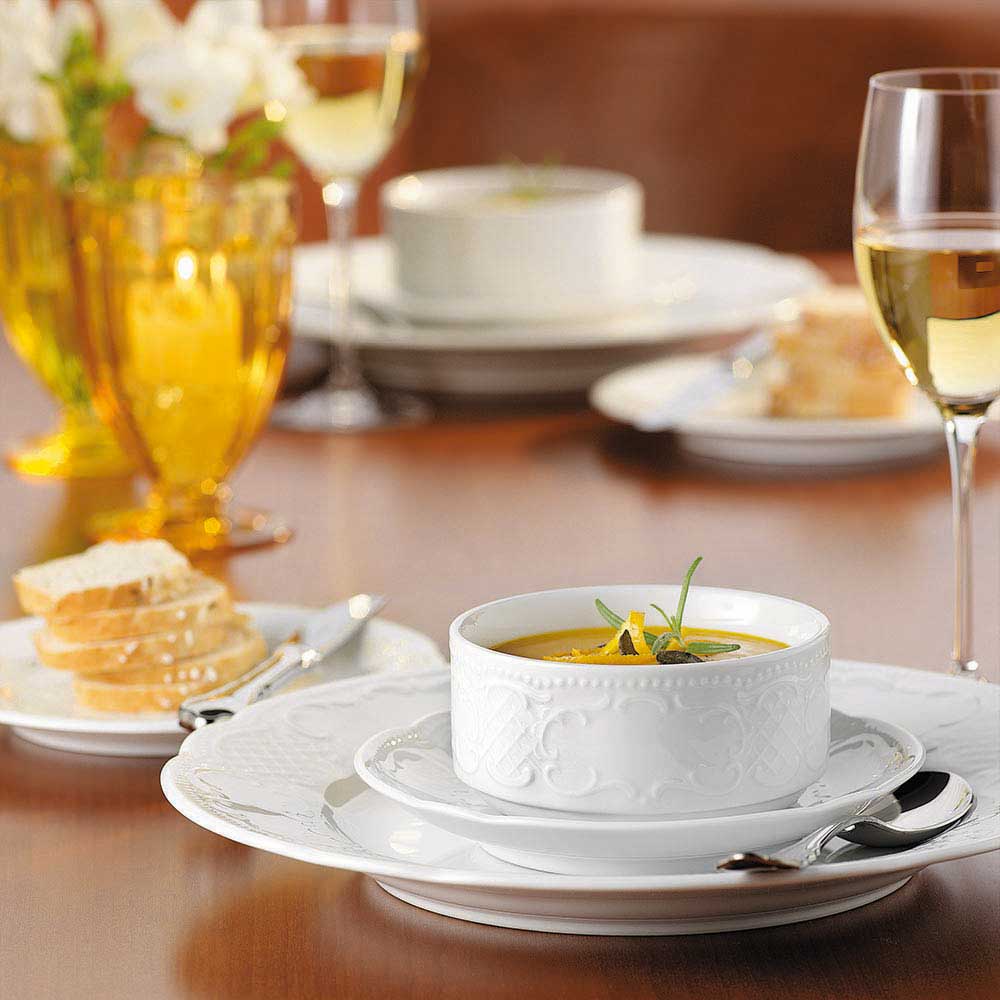 Die filigrane, im Rokokostil gestaltete Form aus reinweißem Hotelporzellan macht diese Serie zur I. Wahl. Qualität, die begeistert!